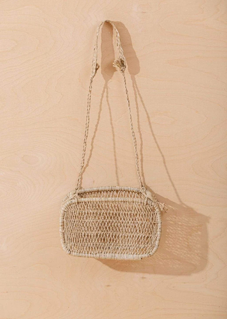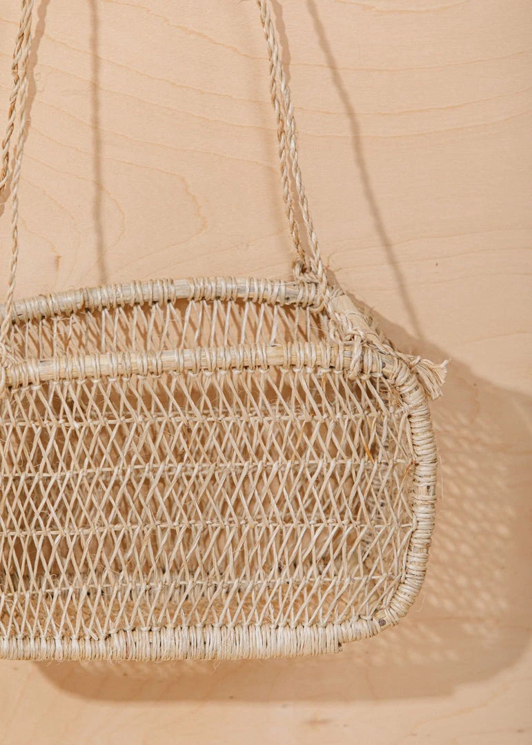 The jonote fiber basket is crafted in the mountain town of Cuetzalan in the south-central state of Puebla, Mexico. These baskets are created through a process of curving wood into circular shapes and knotting jonote fibers throughout. Rustic and charming, this hanging basket looks beautiful hanging alone or can be used for textile storage. Due to the handmade nature, size may vary slightly.