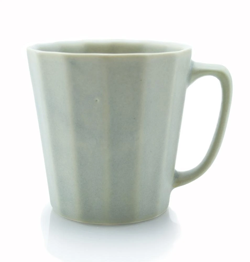 This modern porcelain Monday Mug is elegant, yet durable. Its designed to fit the curve of your palm and the handle will fit your fingers like a glove. Perfect for pour-over coffee, French press, or tea.