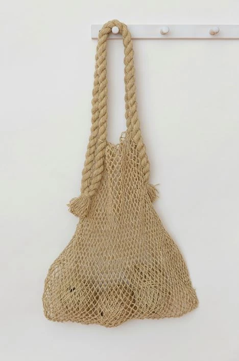 This tote is ideal for weekend trips to the farmers market, beach, or for a weeknight grocery run. Hemp fibers are spun and knotted by hand to create this incredibly strong and flexible bag. It stretches as you fill it to hold a surprising volume of goodies.
