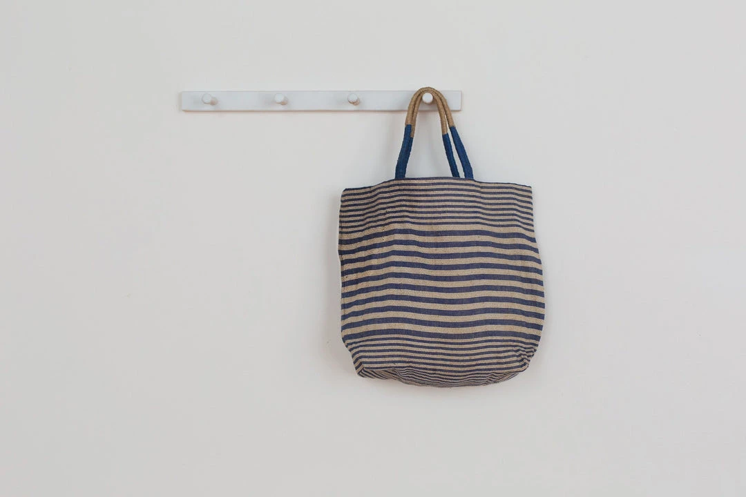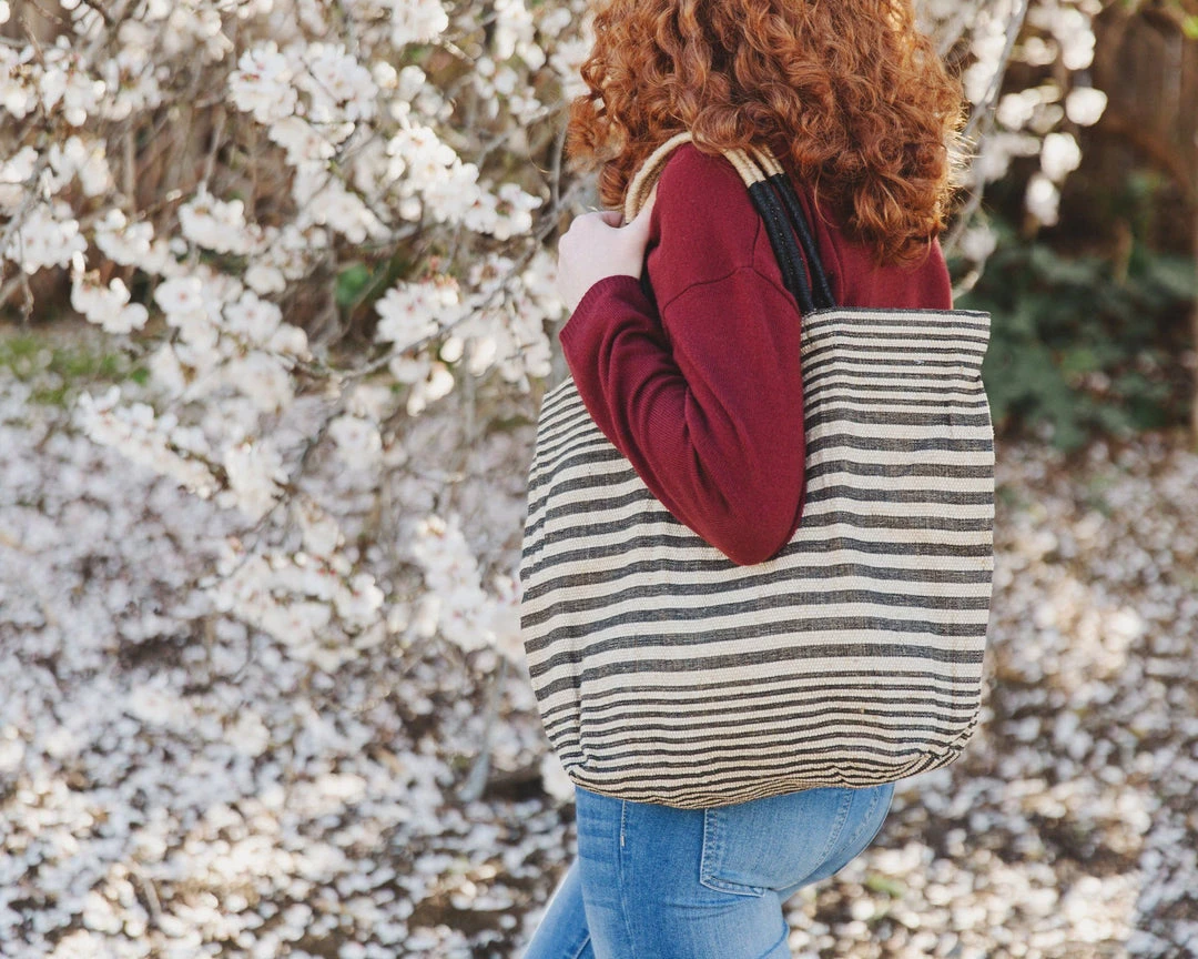 The Paloma Shoppers are handwoven by women working within a Fair Trade program in Bangladesh. These talented women combine traditional weaving styles with contemporary designs and natural materials. Handcrafted striped jute fabric is paired with sturdy handles to create a bag that is durable, stylish and will hold all you need for adventures near or far. Perfect for the farmer’s market or errands around town, this bag is sure to become a new favorite.