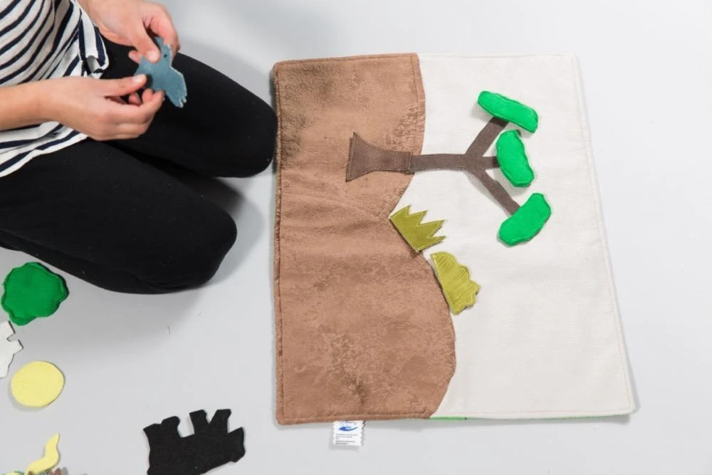 The Forest Habitat Storyboard allows children to tap into their imagination to create their own story about a forest and learn spatial relationships, discover elements of a forest habitat, and explore new animals and creatures. This Storyboard comes with animal, plant, and nature pieces that can be found in the forest. The play mat rolls up and comes with a cotton carrying case for small pieces, making it compact and portable.