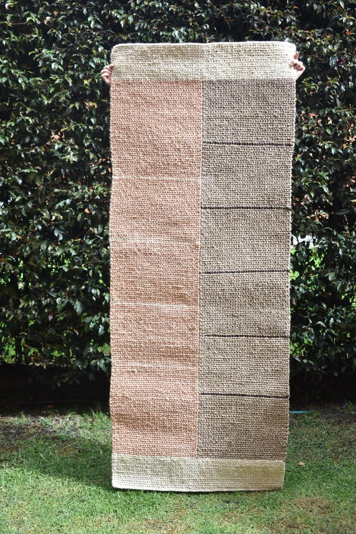 Fique is a Colombian fiber commonly used for rug and basket weaving. The fiber comes from the family of agave plants, and like hemp, it does not need any fertilizers or pesticides to grow. This runner rug is handwoven by a family of artisans from the Santander region of Colombia. Woven in a vertical loom, this rug is hand-knotted for 2 weeks and the result is a perfectly crafted geometric modern rug for outdoor and indoor spaces.